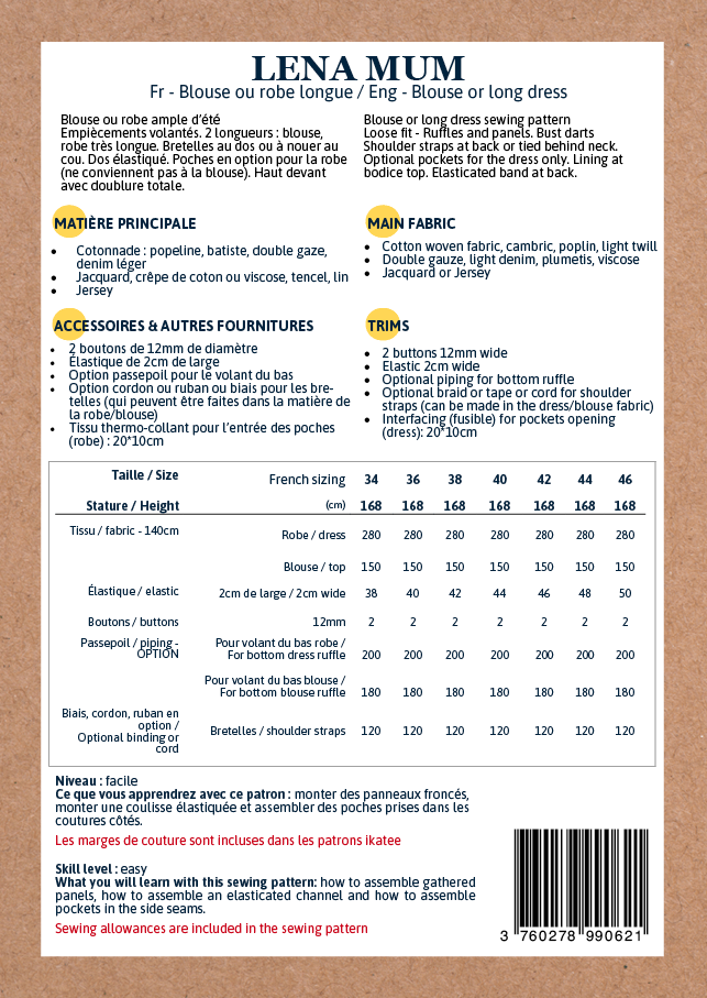 Lena Mum Blouse & Dress Sewing Pattern - Ladies 34/46 - Ikatee - Simplifi Fabric