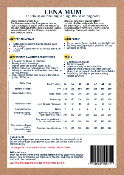 Lena Mum Blouse & Dress Sewing Pattern - Ladies 34/46 - Ikatee