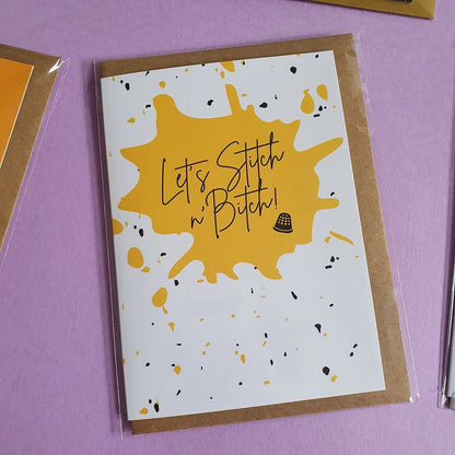 "LET'S STITCH N' BITCH" Sewing Themed Greeting Card - Sew Anonymous
