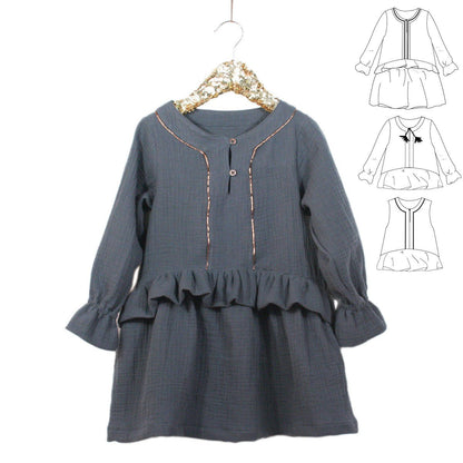 Lilas Blouse, Top & Dress Sewing Pattern - Girl 3/12Y - IkateeIKATEE-L-3/12
