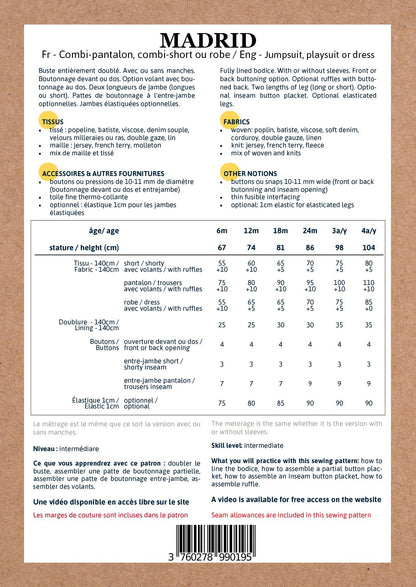Madrid Jumpsuit/Playsuit Sewing Pattern - Baby 6M/4Y - Ikatee