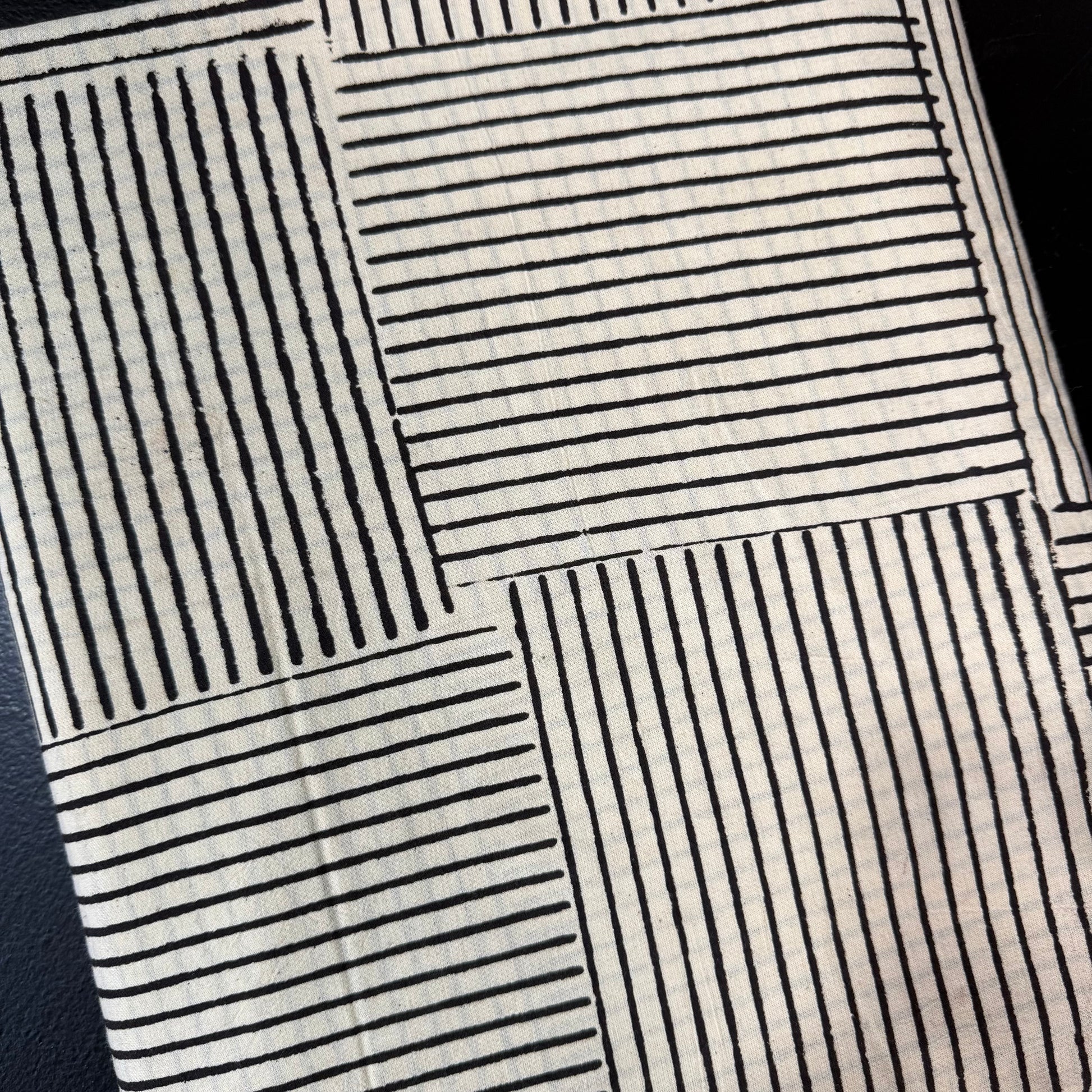 Modern Weave Black /Parchment - Bagru Indian Cotton Block Print