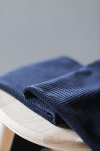This 100% Organic Cotton corduroy velour is made with combed cotton yarns to ensure the perfect soft feel for cosy sweaters, joggers and even knit dresses.