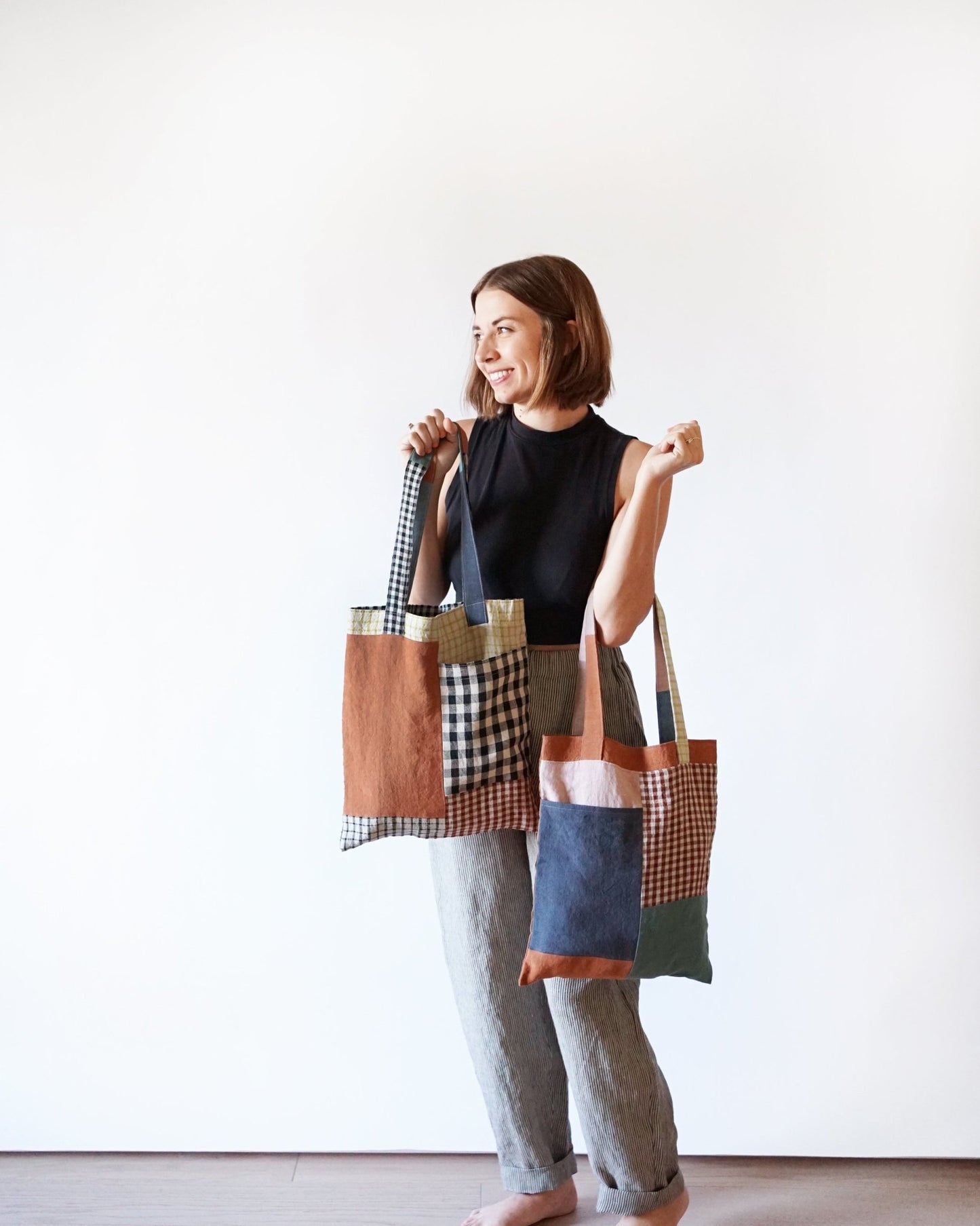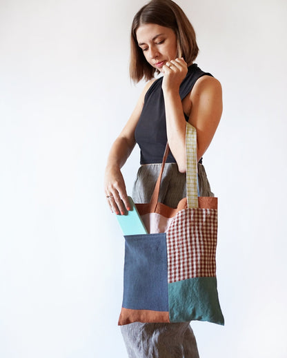 The Stash Pocket Tote is a fully lined tote bag with an outside pocket and shoulder straps. It is the perfect scrap buster and looks great in a patchwork style or single fabric. This is a quick and satisfying sew that you will reach for again and again.