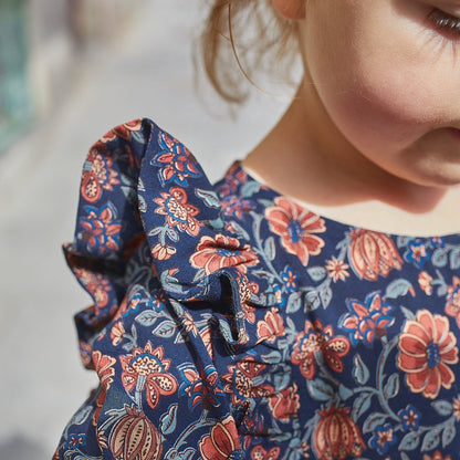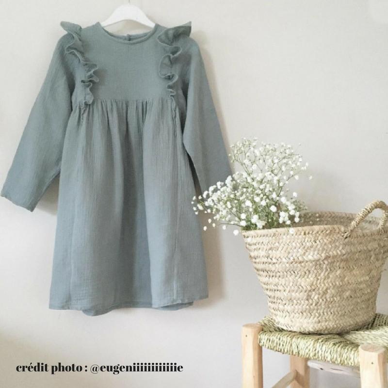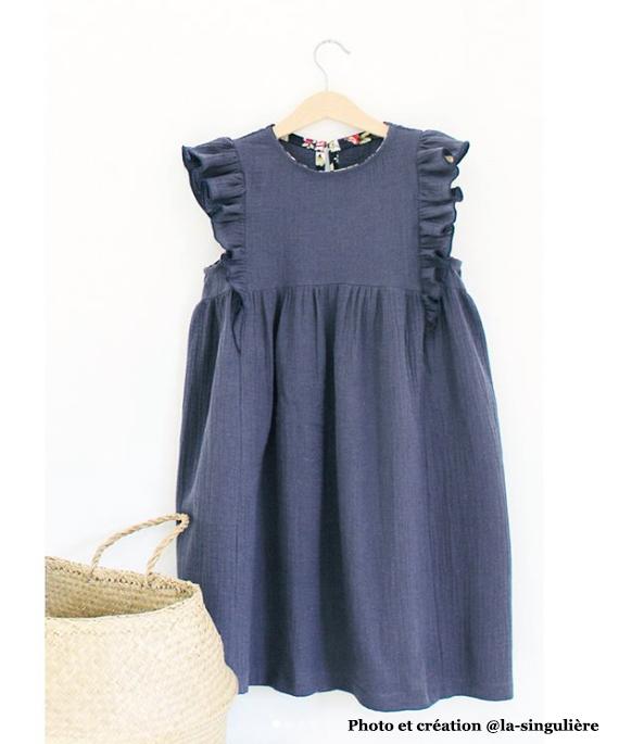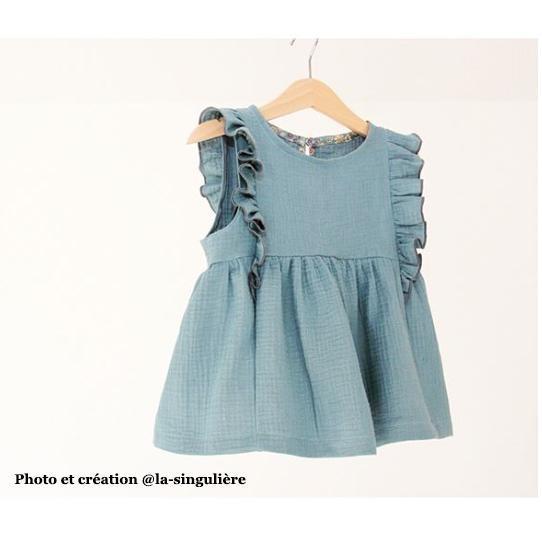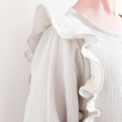 What you will learn with this sewing pattern: how to sew a back opening with button and loop, how to sew ruffles, how to sew a bias binding at neckline.