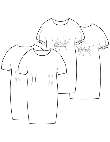 A relaxed fit dress with options for gather or tuck details to add shape and definition.
