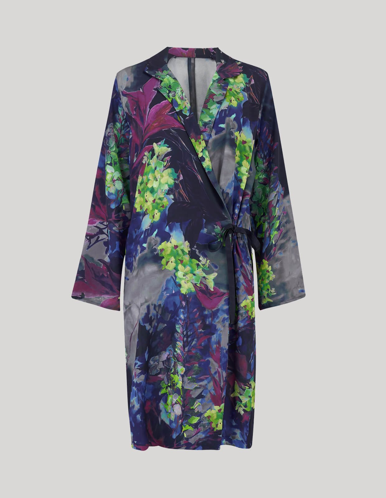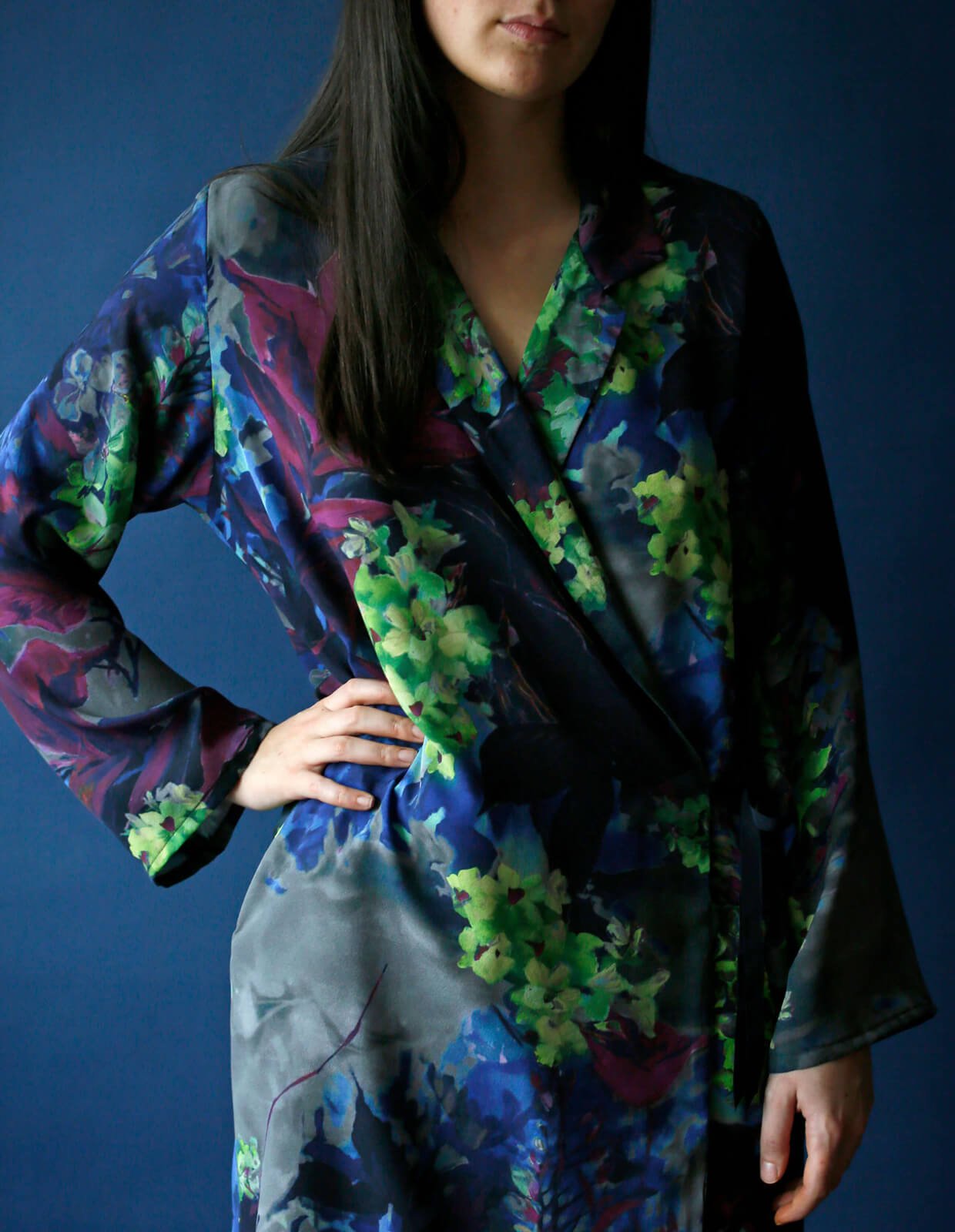 A relaxed, sophisticated wrap style designed especially for woven fabrics.