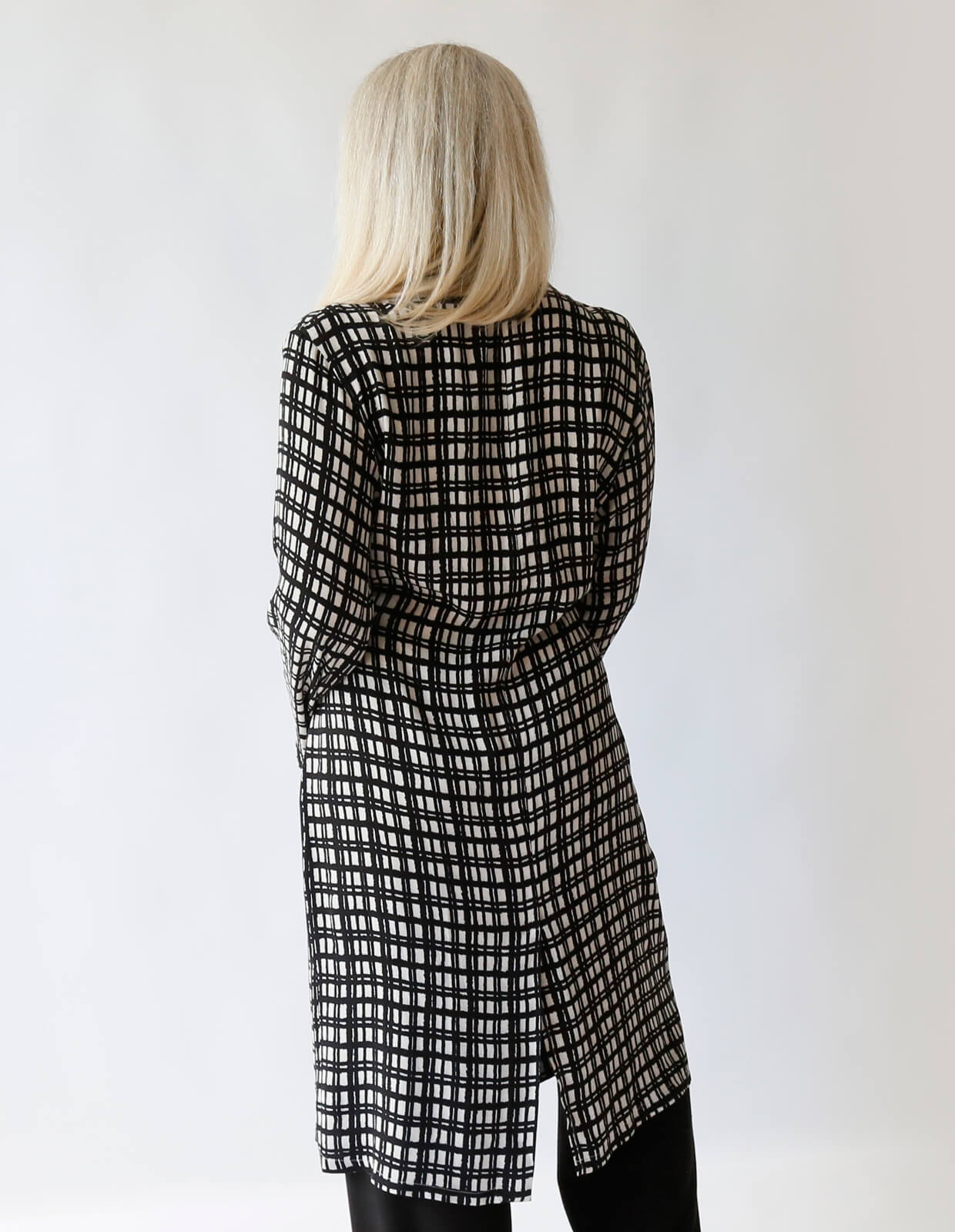 It can be worn simply as a dress, layered over trousers or even as a lightweight coat.