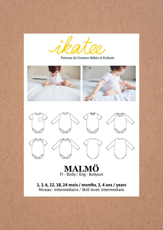 Malmö Bodysuit Sewing Pattern - Baby Boy & Girl 1M/4Y - Ikatee