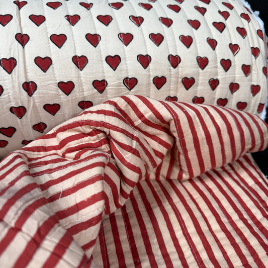 Little Loves + Clay Stripe- Quilted Bagru Indian Cotton Block Print (Reversible)