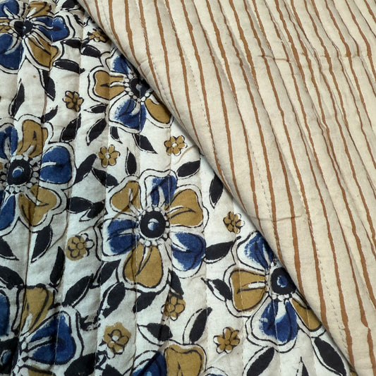 Cumin Stripe + Petals Indigo/Cumin - Quilted Bagru Indian Cotton Block Print (Reversible)