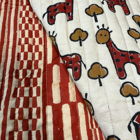 Harvest Lines Terra + Happy Safari Red - Quilted Bagru Indian Cotton Block Print (Reversible)