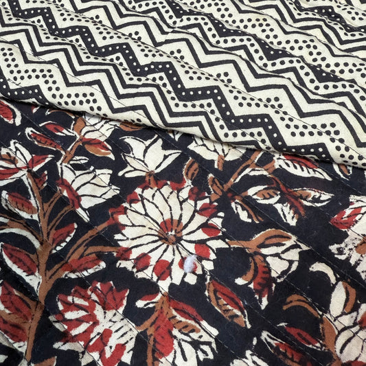 Rust Bloom Drop + Ebony Blossom Vine - Quilted Bagru Indian Cotton Block Print (Reversible)