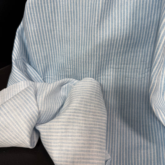 Hickory Stripe Denim Look Double Gauze - Japanese Import - Light Denim/Light