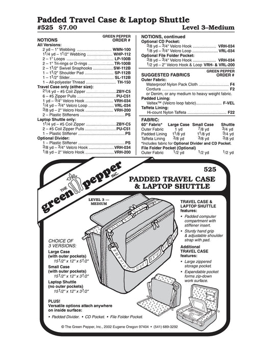 Padded Briefcase & Laptop Shuttle Pattern - 525 - The Green Pepper Patterns