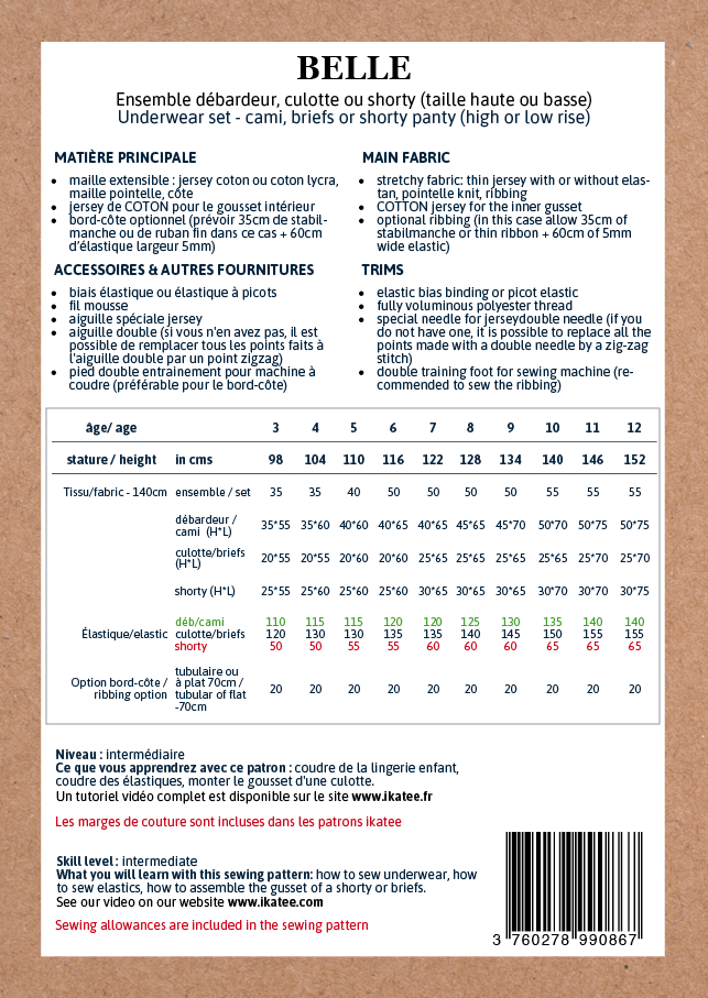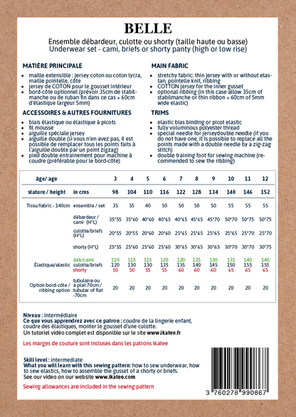 Belle Underwear Set Sewing Pattern - Girl 3/12Y - Ikatee