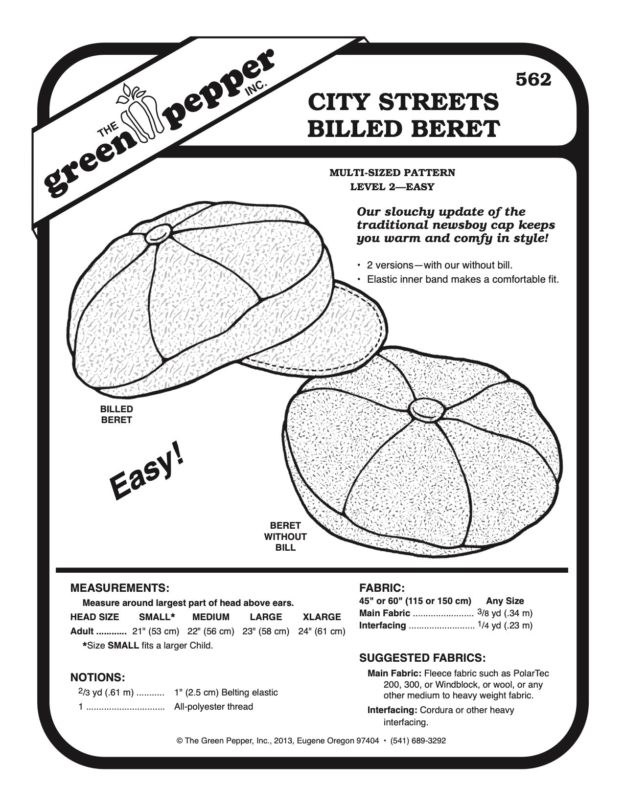 City Streets Billed Beret Pattern - 562 - The Green Pepper Patterns