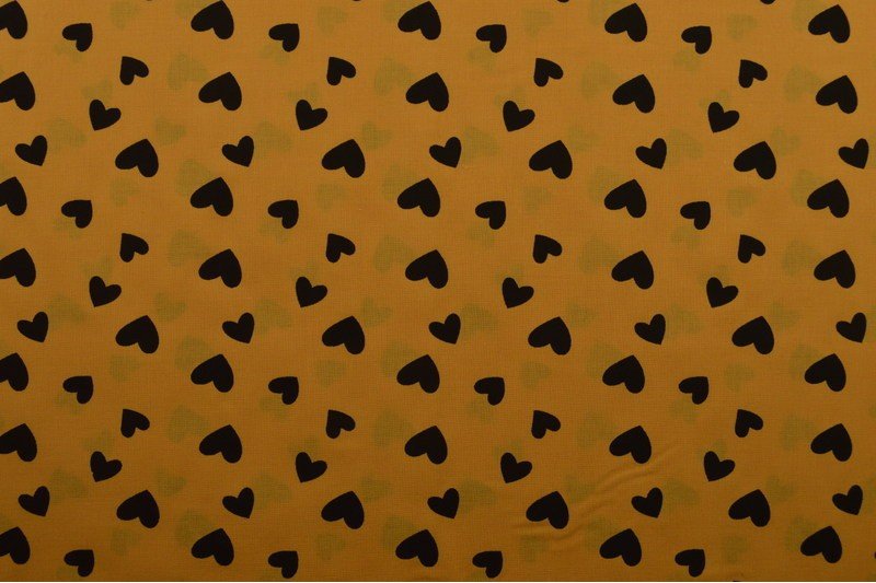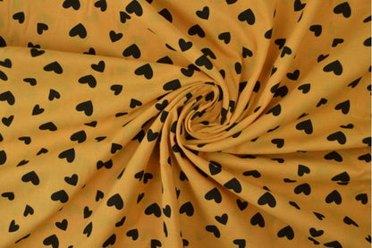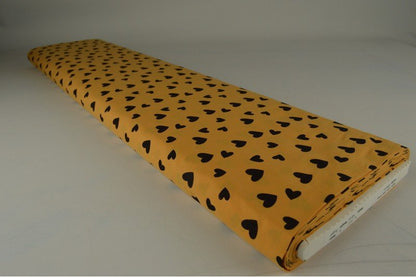 Cotton Voile - BLACK HEARTS - European Import - Oeko-Tex® - Ochre Yellow