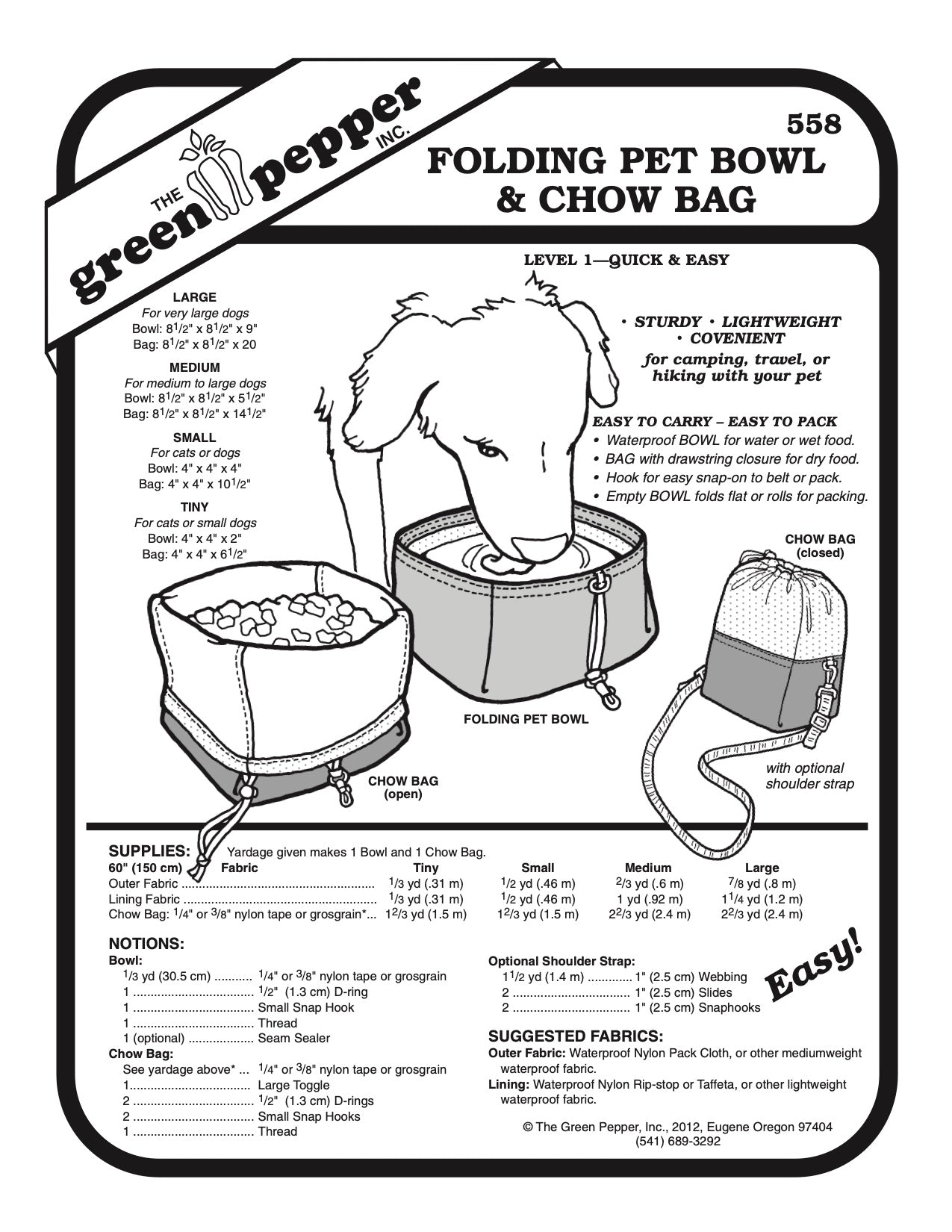Folding Pet Bowl & Chow Bag Pattern - 558 - The Green Pepper Patterns