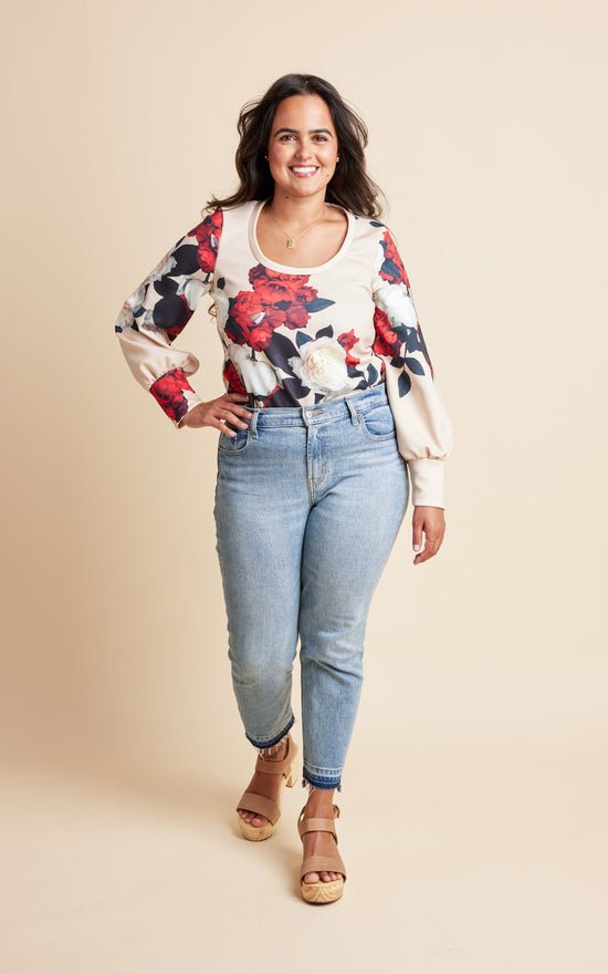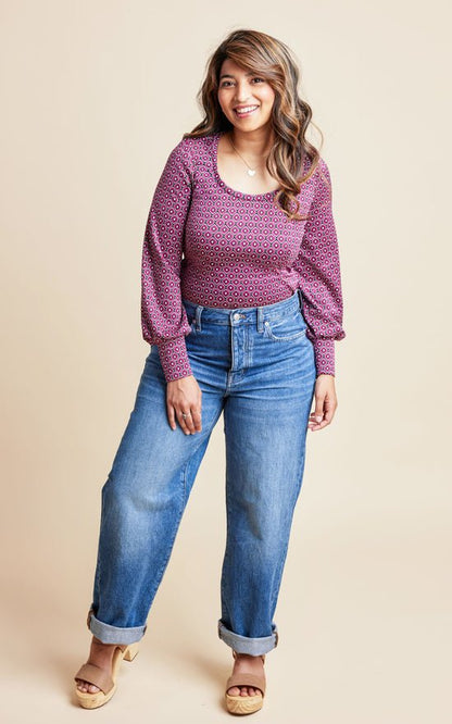 This curve-friendly sewing pattern comes with cup sizes C-H and multiple bodice, skirt, sleeve, and neckline options to make over 400 possible knit dresses, skirts, and tops. Sew a casual skater dress, a trendy asymmetrical skirt, a glamorous gown, an elevated tee, a retro frock, and so much more. You can craft a unique look every time you sew the Grafton!