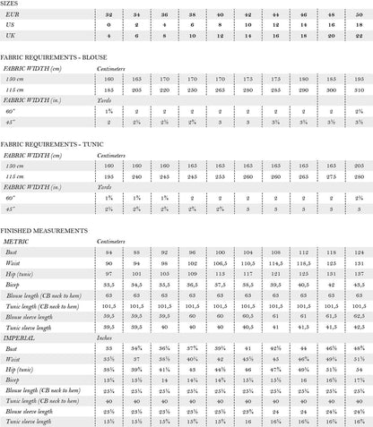 - The pattern includes two variations: A loose-fitting blouse and a relaxed tunic dress