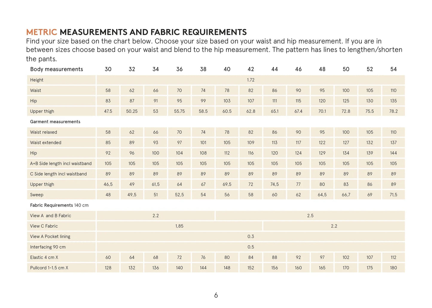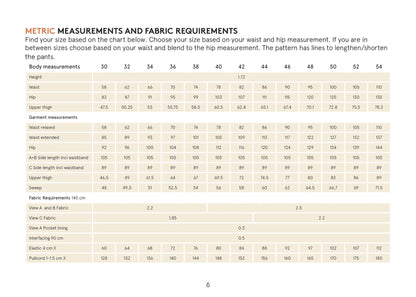 Customize your look with options for cropped or full-length legs to suit your style. Flip through the images to find detailed fabric requirements and measurements tailored for sizes 0-24 / 30-54.