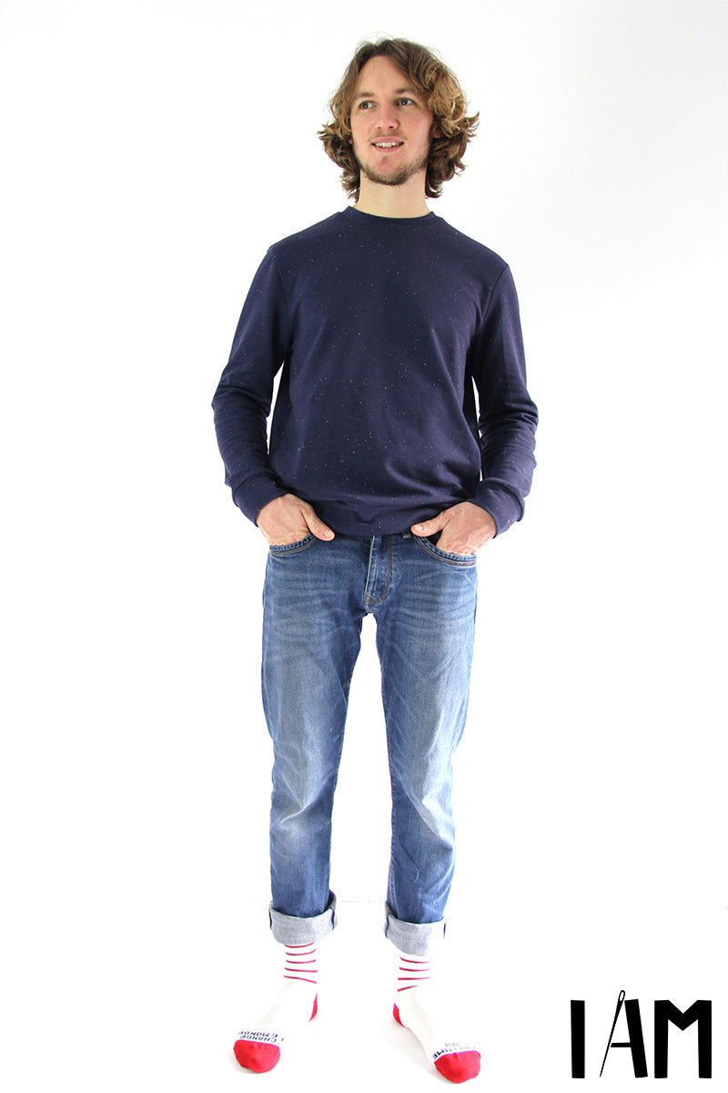 I am Apollon, your favourite classic sweatshirt. I am THE staple of the modern men’s wardrobe. You decide to wear me with a collar shirt for the office or with a T-shirt for a relaxed weekend. You can sew me easily and quickly using only one fabric.