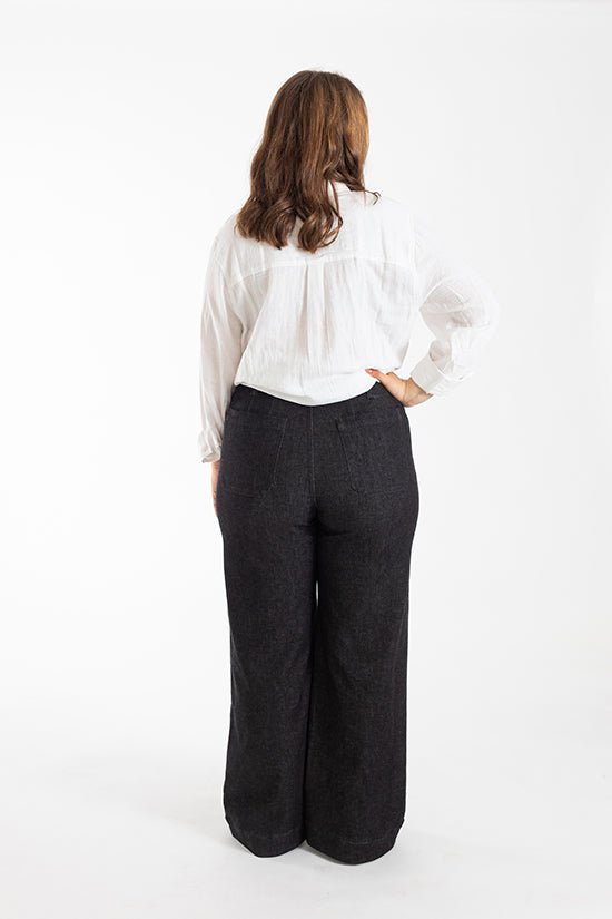 Both views of the Isle pattern feature practical front and back patch pockets, blending functionality with style. Whether you're stepping out for brunch or heading to a casual meeting, this pattern will elevate your denim experience.