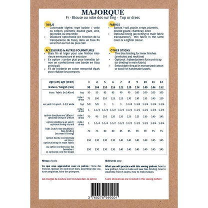 Majorque Top or Dress Sewing Pattern - Girl 3/12Y - Ikatee