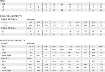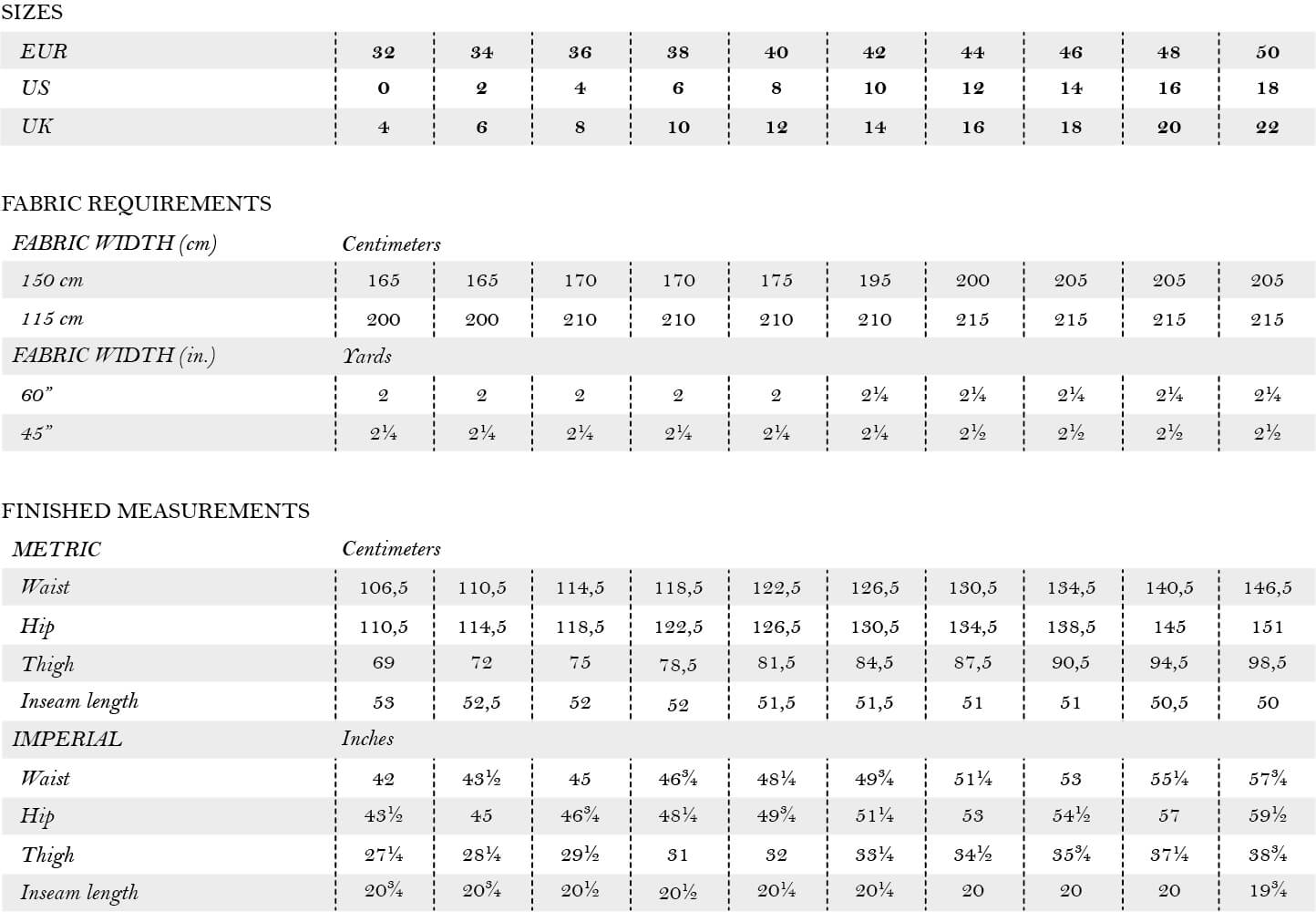 Sizes: EUR 32 – 50 (US 0 – 18 / UK 4 – 22)
