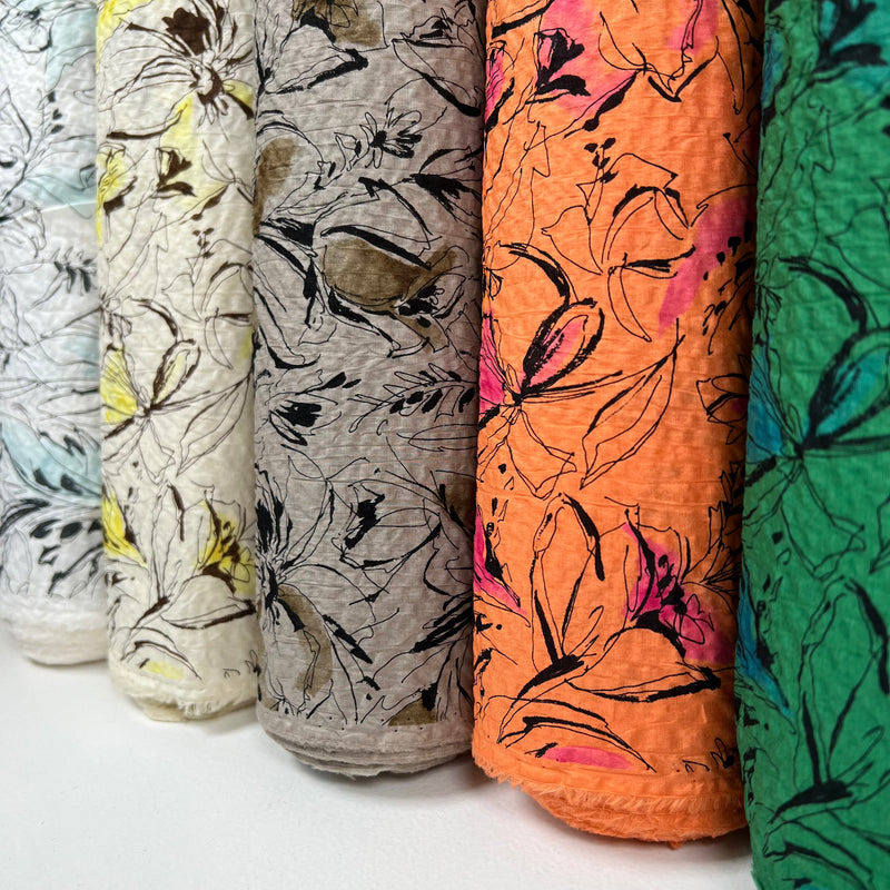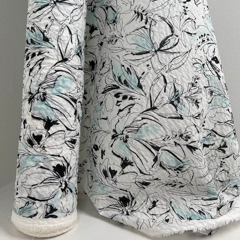 Printed Lawn Shrink Finish - Miracle Wave - Oeko-Tex® - Japanese Import - Abstract Floral I - Black / Seafoam / White