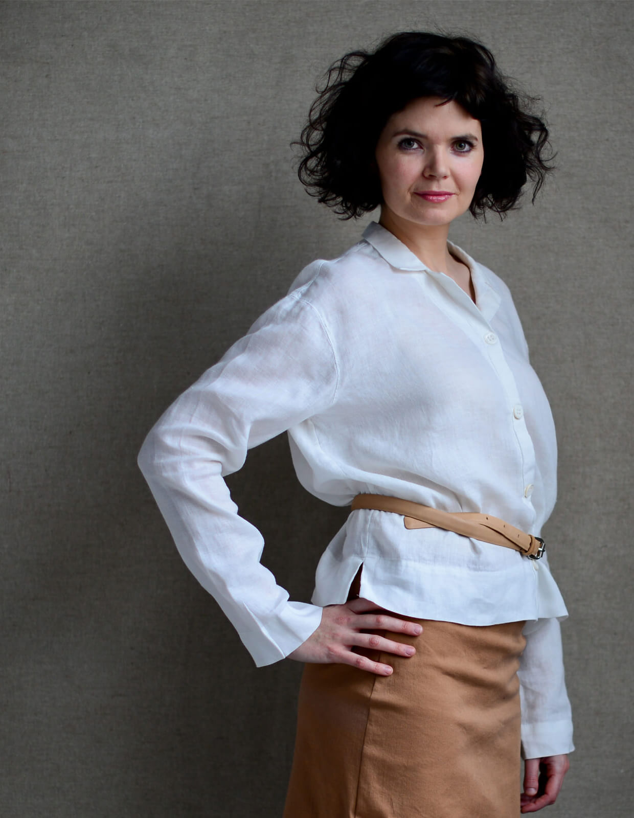 The style suits many woven fabrics and can be worn belted, loose or tucked-in.