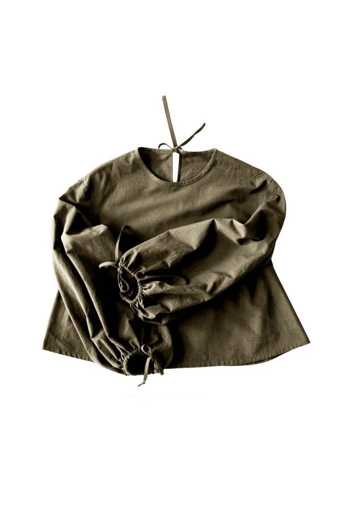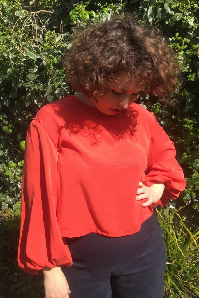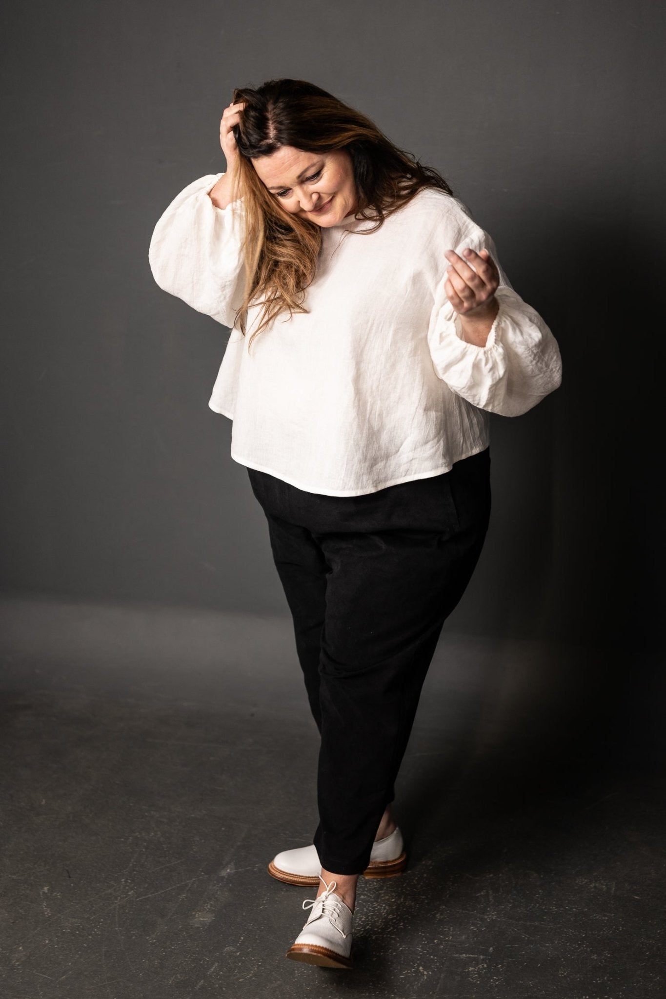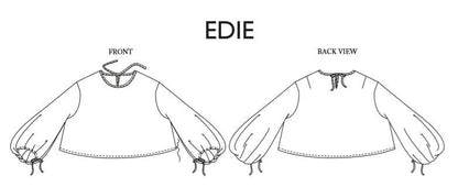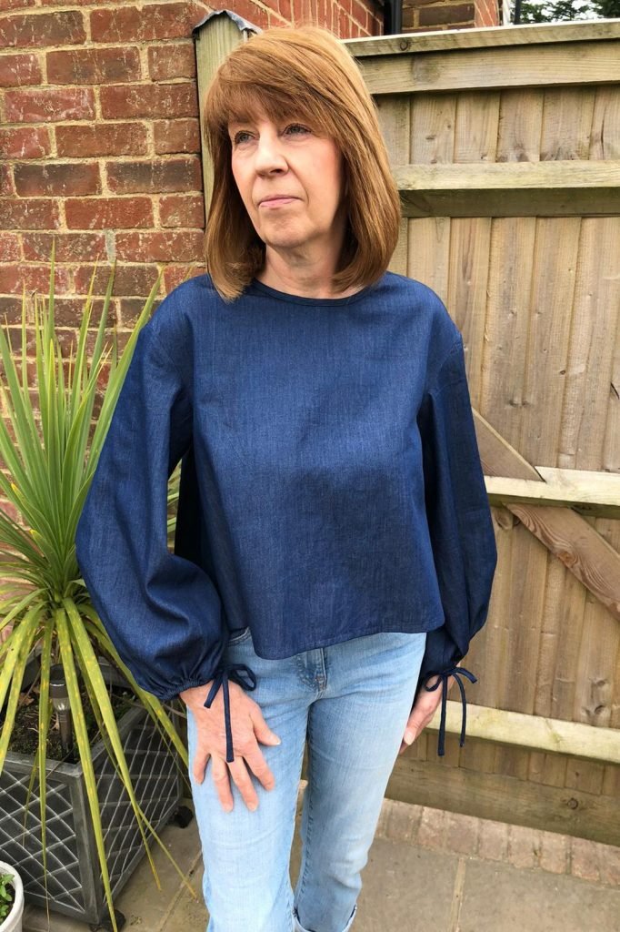 The balloon sleeves of this simple top are the only detail that it requires to stand out. Less is more. The full sleeves are gathered with a tie which is threaded through a buttonhole, alternatively you can omit this buttonhole and insert elastic instead. The Edie has a dropped shoulder, you could also extend the top into a dress – we found that the sleeves looked better a little shorter for a dress version. Depending on the length you require we’d suggest adding about 60cm.