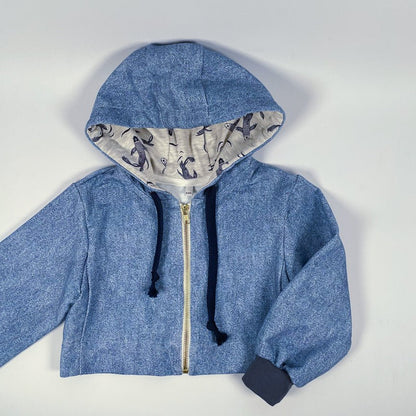What you will learn with this sewing pattern: how to assemble a lined hood, a zipper, yokes, ribbed cuffs, and how to make gathering at the bottom of sleeves.