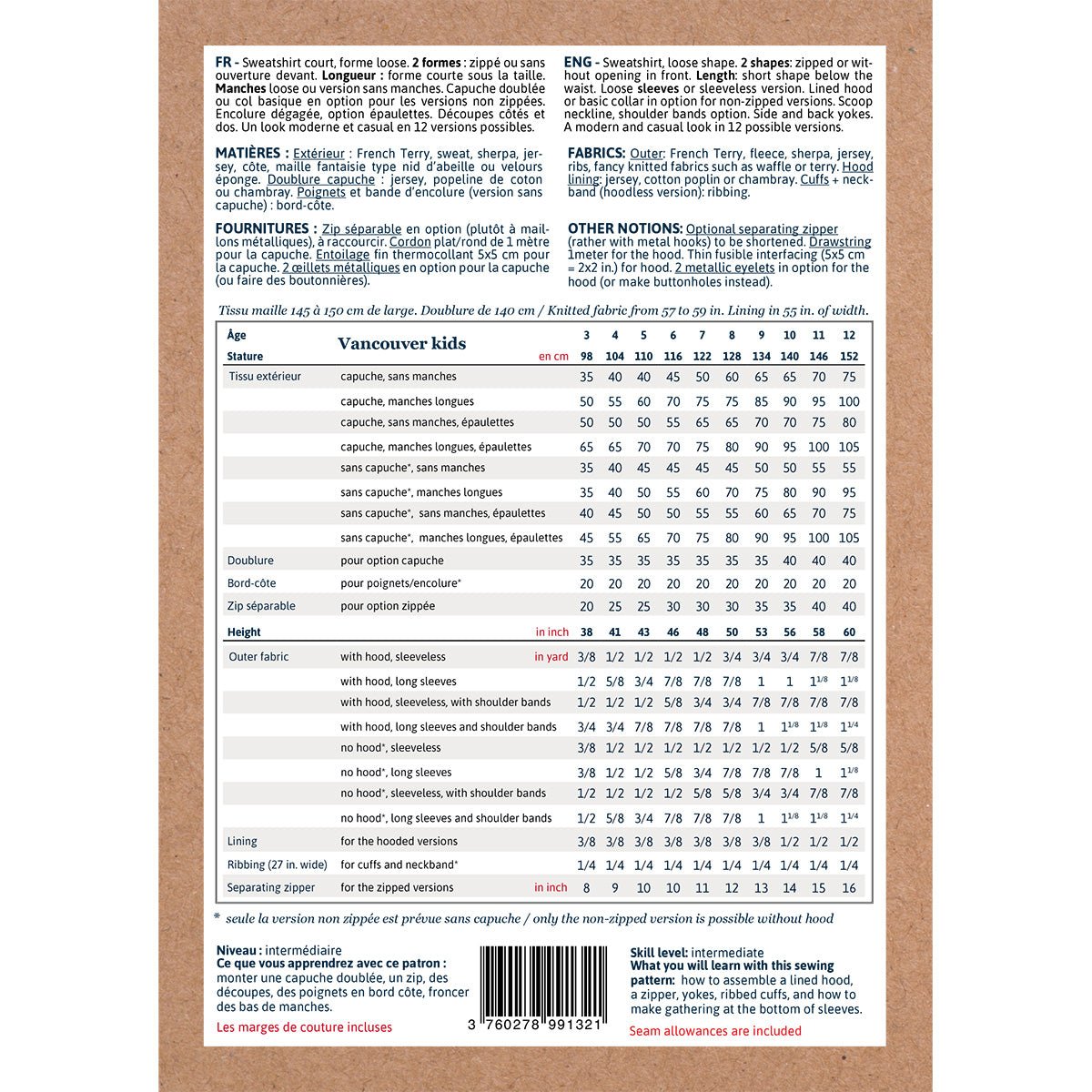 Vancouver Sweatshirt Sewing Pattern - Kids 3/12Y - Ikatee