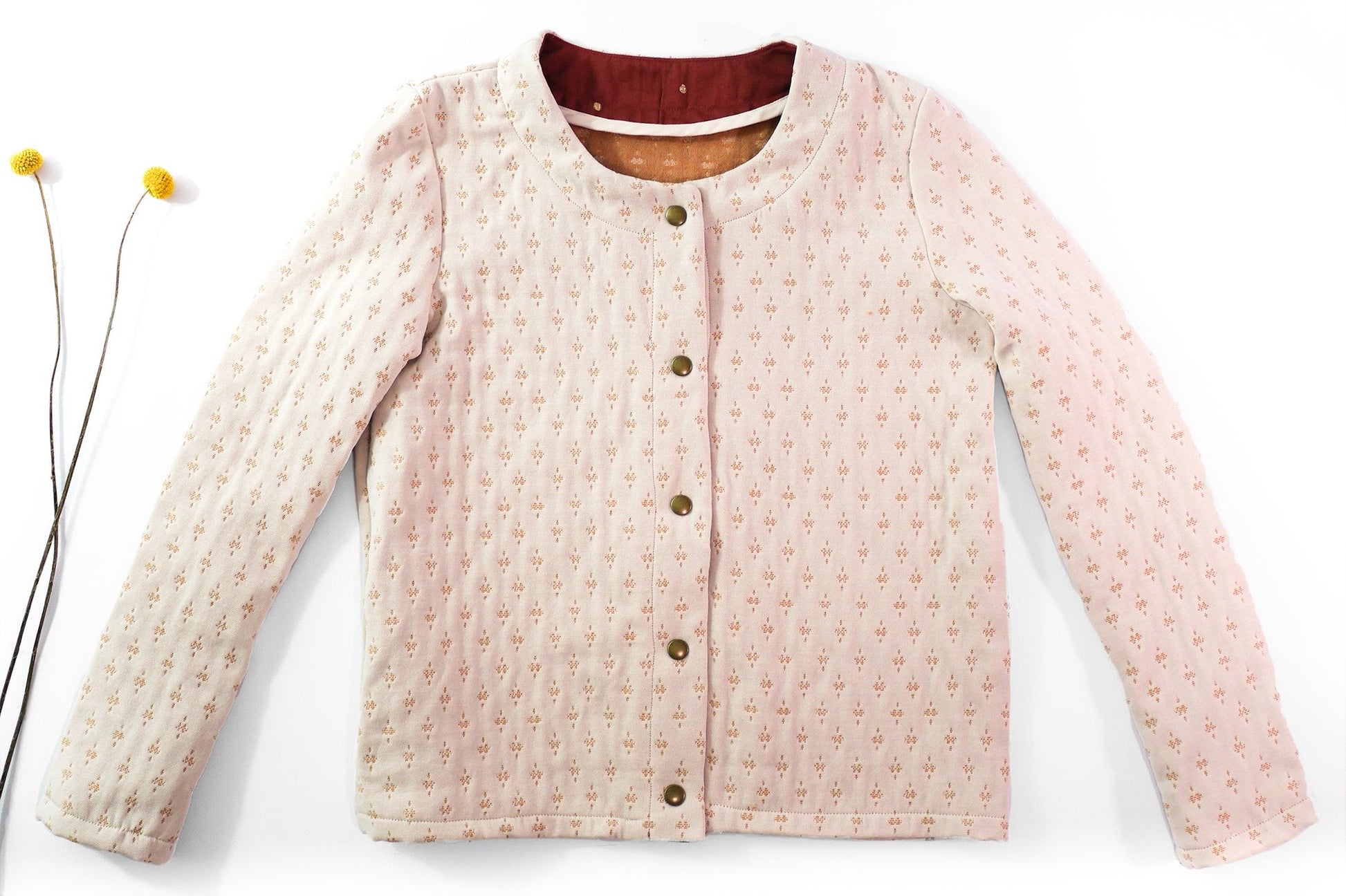 What you will practice with this sewing pattern: make a buttoned placket directly on the body or assemble a facing, apply a bias binding at the neckline and at the bottom of the sleeves for the bias option. Sew optional pockets.