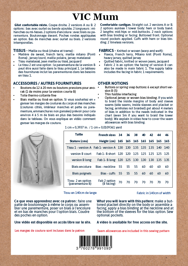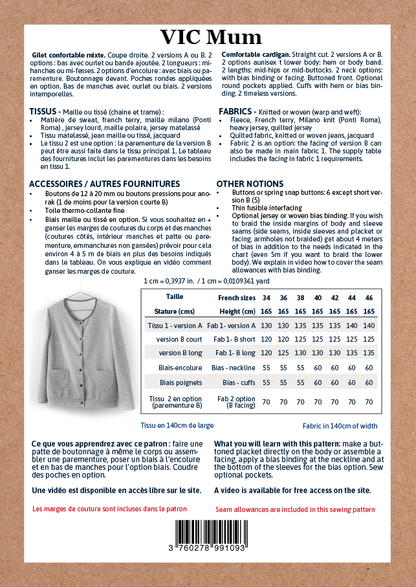 Vic Mum Cardigan Sewing Pattern - Ladies 34/46 - Ikatee
