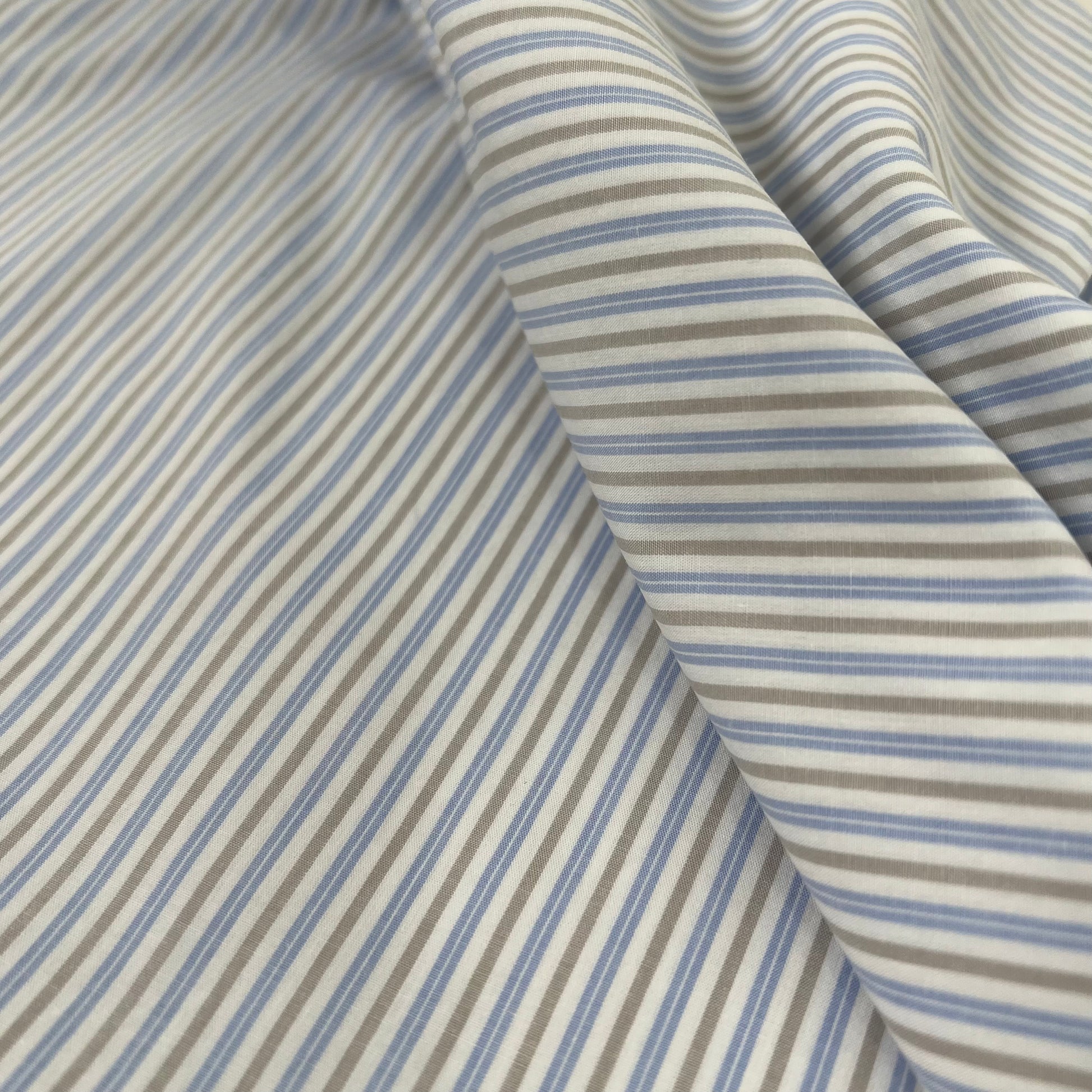 Yarn Dyed Washed Striped Organic Cotton Shirting - Oeko-Tex® - Japanese Import - Blue/Grey/White Stripe