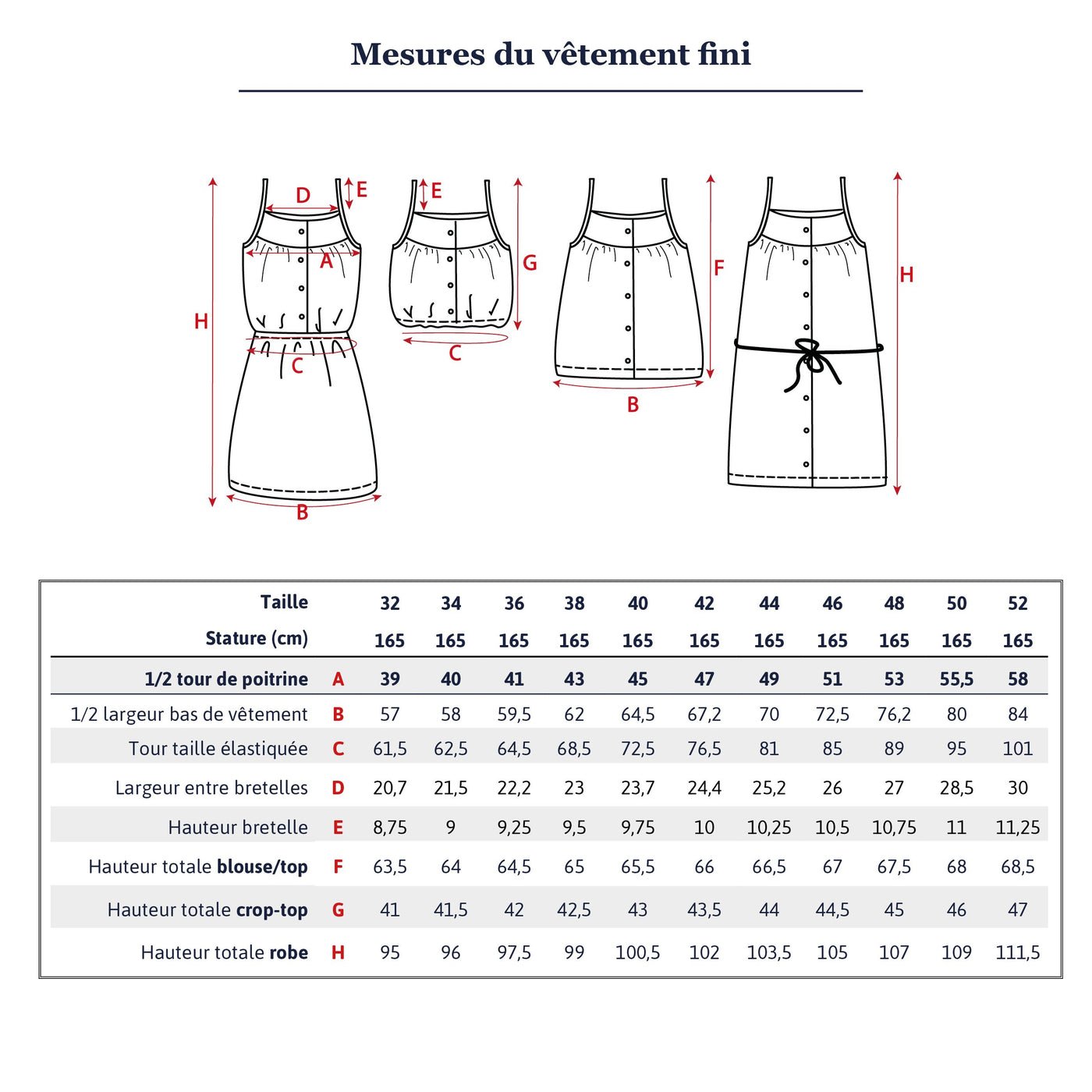 A video is available in free access on the site including the complete assembly of the garment (all options).Size range: 32, 34, 36, 38, 40, 42, 44, 46, 48, 50, 52 (French sizes)