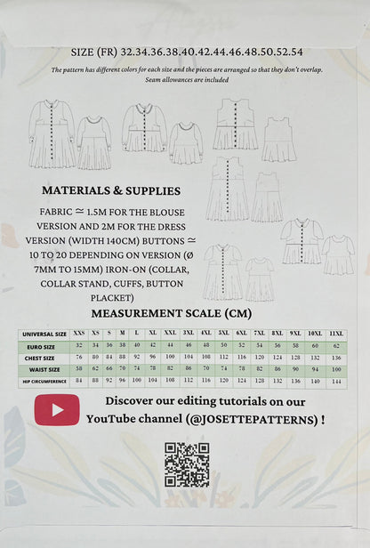 Alysse - Womens Top / Dress- Josette Patterns