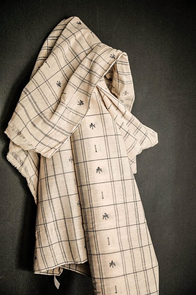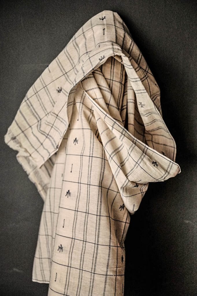 Jamdani is fine muslin cotton with small geometric motifs, it’s a highly skilled weaving technique that has been practiced in India for centuries. This cloth comes alive once washed, it gets much softer and has a beautiful slub and texture.