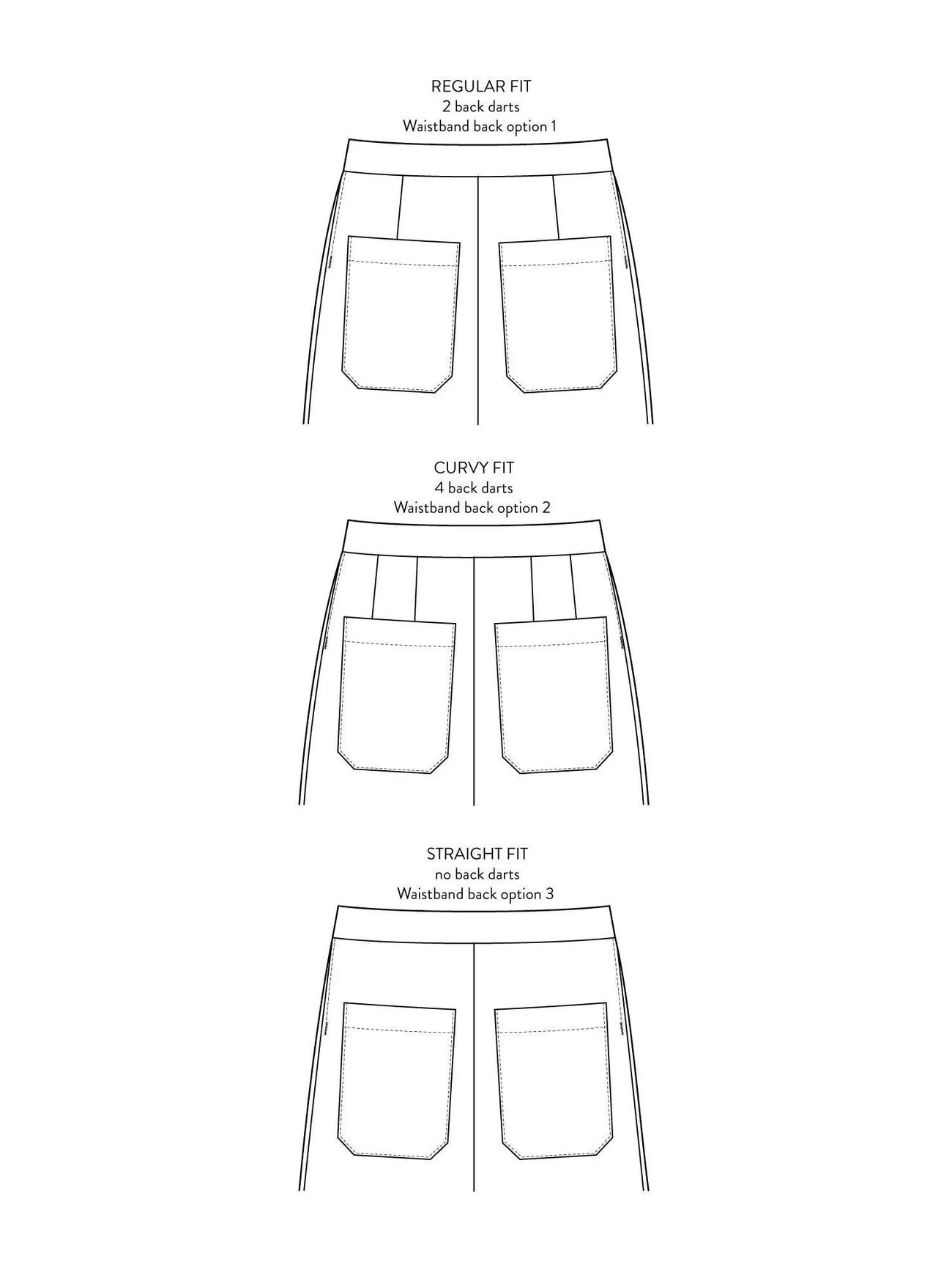 Additionally, the trousers offer flexibility with three different options for the back leg waist and waistband, Regular, Curvy or Straight, ensuring a comfortable fit for various body shapes.