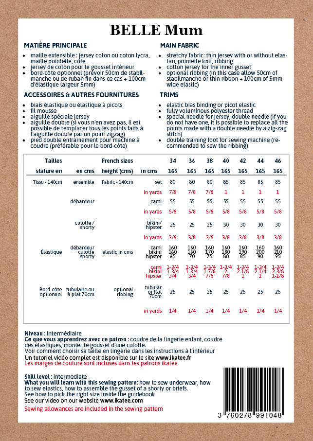 Belle Mum Underwear Set Sewing Pattern - Ladies 34/46 - Ikatee