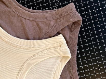 The Blomma Tank is a fitted top with two cup size options, a B-cup, and a D-cup with darts. It has athletic style lines and 3/4" (2cm) wide bindings. The pattern also has tips on how to change the neckline and /or armhole, as well as changing the width of the bindings.