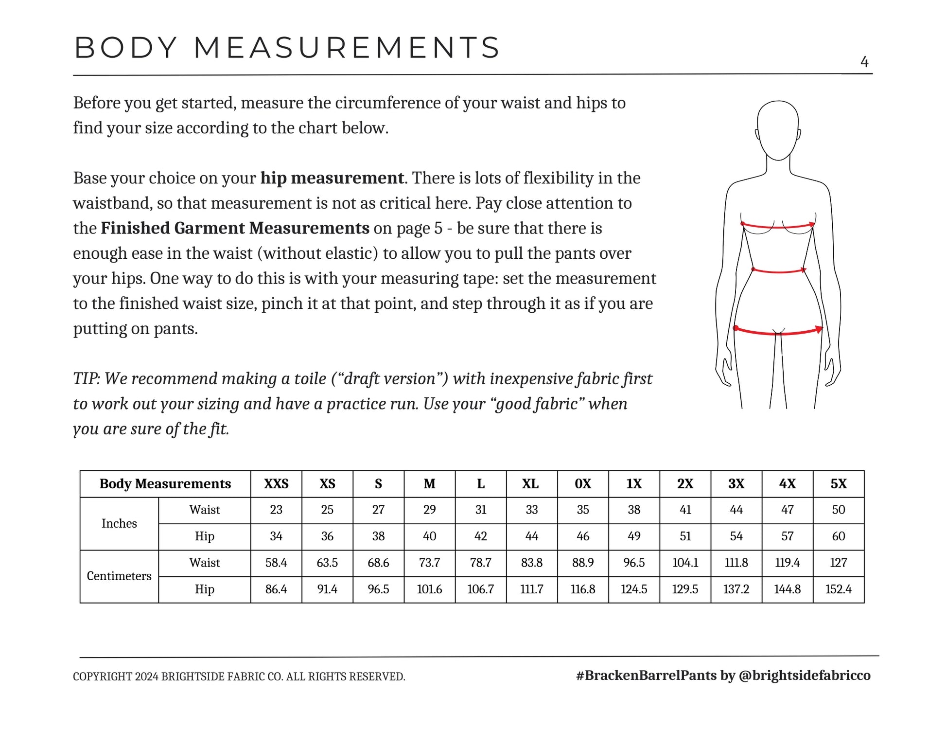 Bracken Barrel Pants Sewing PDF Pattern - Brightside Fabric Co.