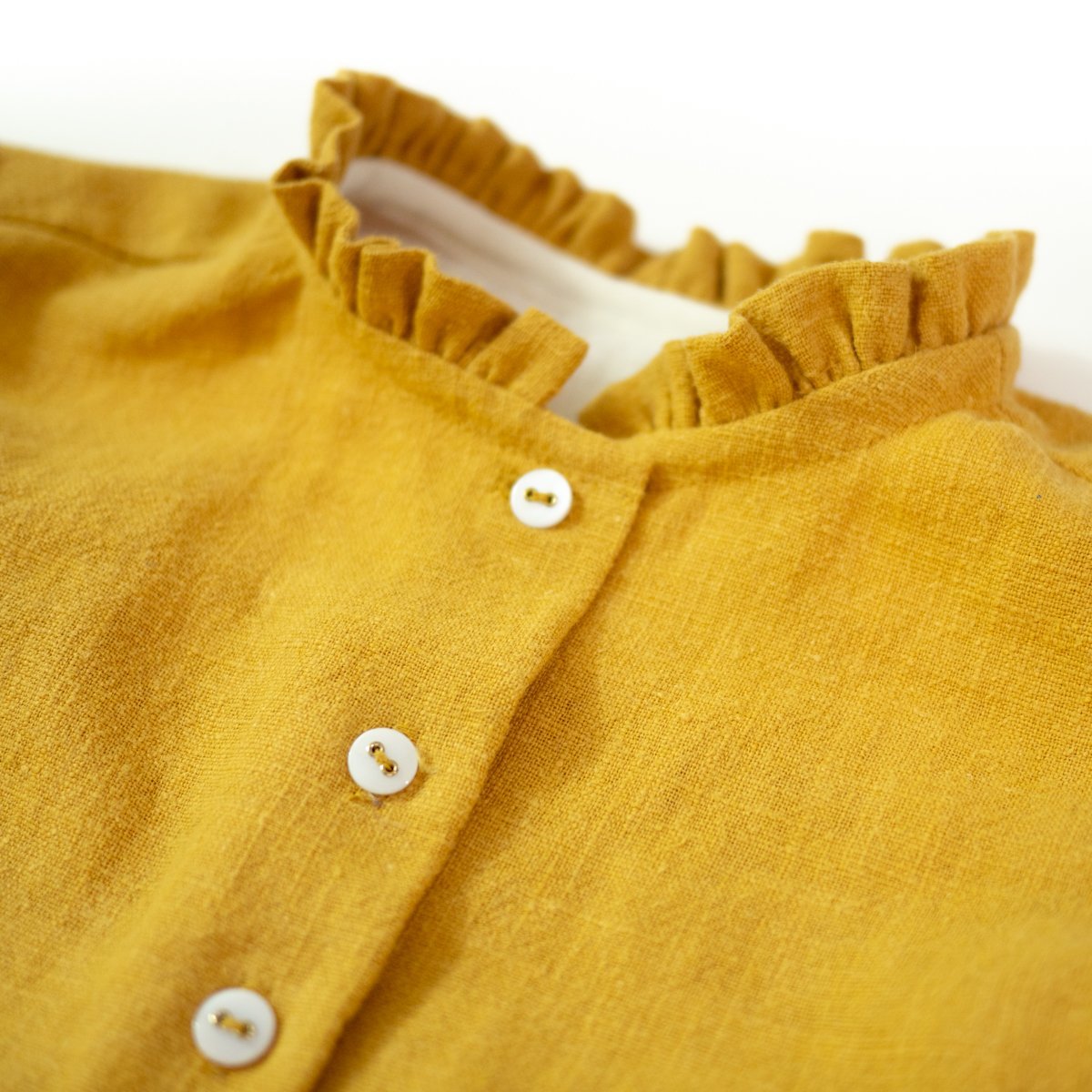 What you will practice with this sewing pattern: how to assemble a lined yoke, how to assemble a partial butonning, how to sew a classic collar or a ruffle collar, how to sew an outer casing.