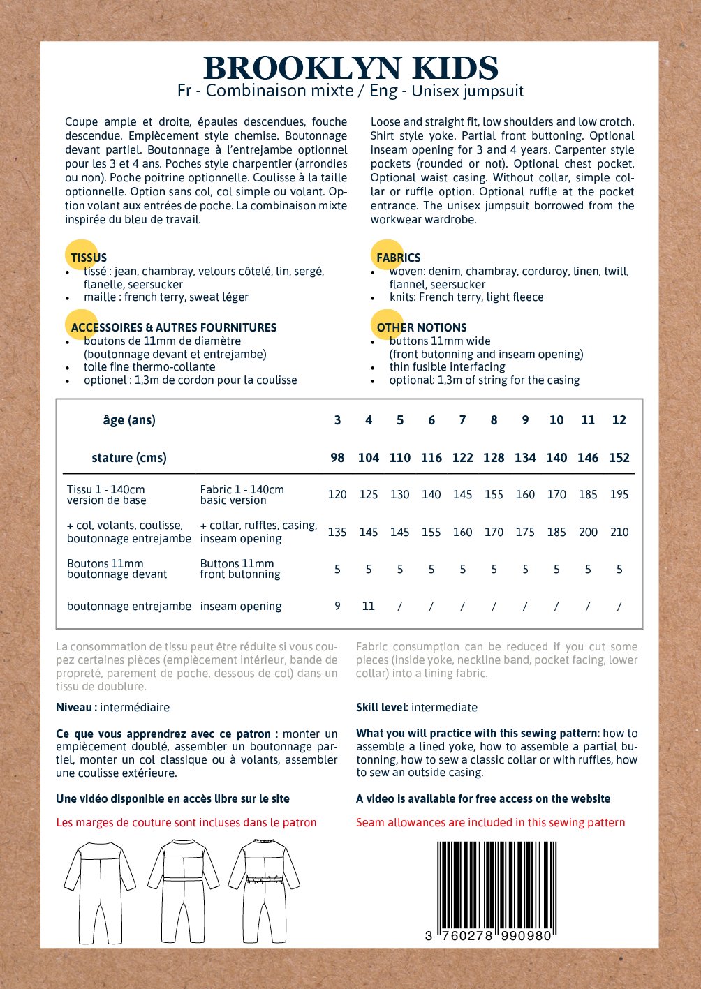 Brooklyn Jumpsuit Sewing Pattern - Kids 3/12Y - Ikatee
