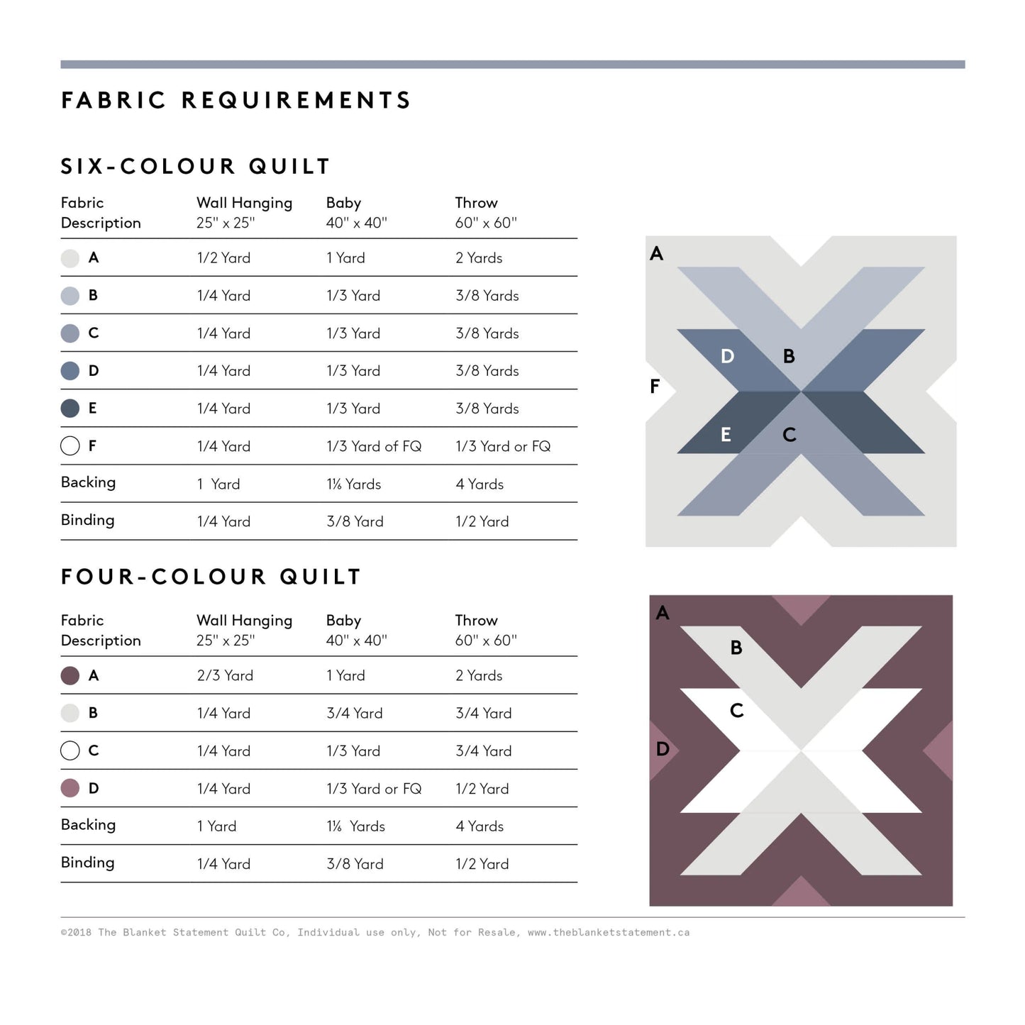 This modern original quilt pattern is appropriate for quilters of all skill levels and is a fast finish. The pattern includes instructions for the following sizes: