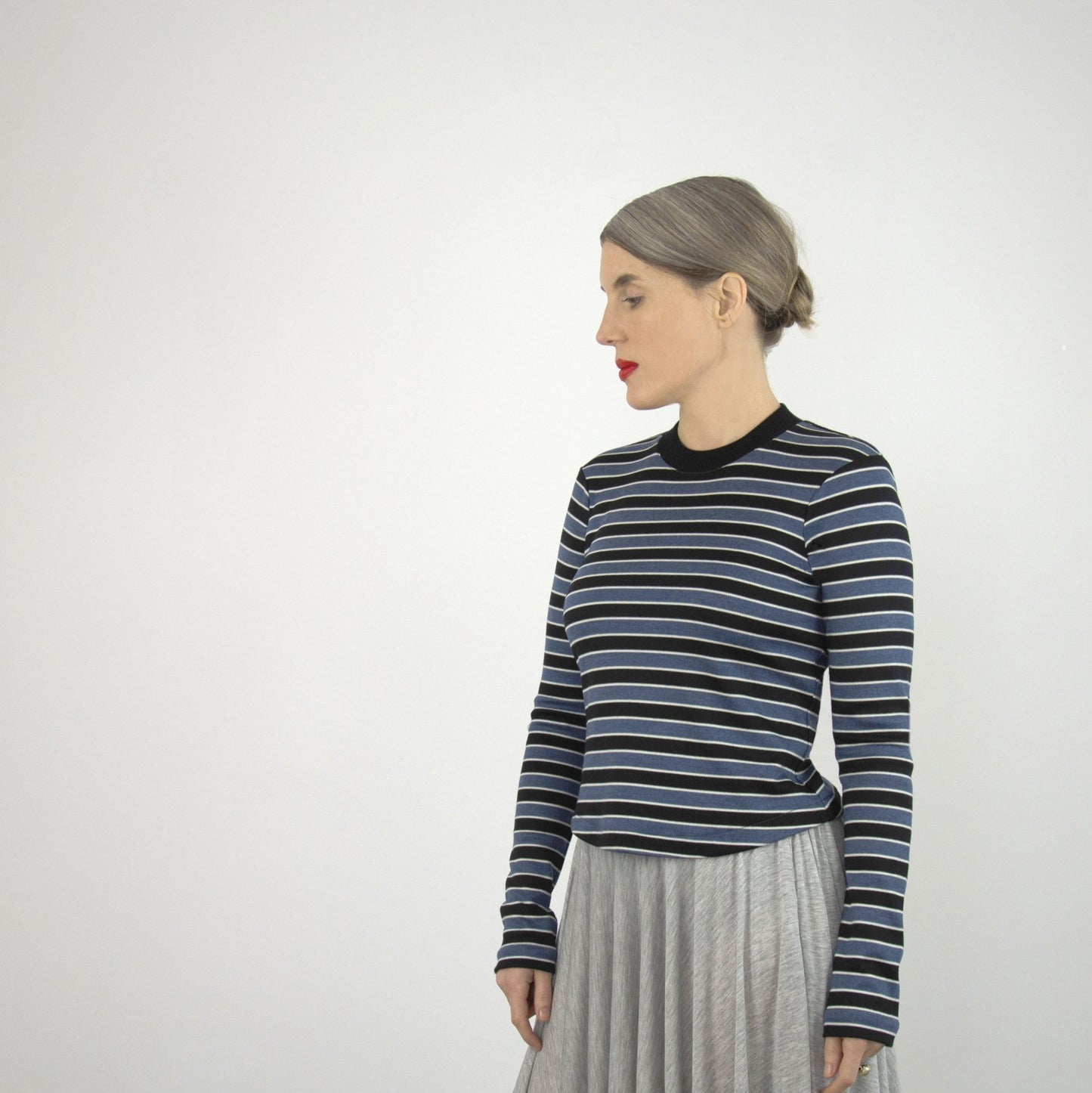 Working with Merino knits to develop this pattern the tightness has been adjusted on different areas of the body to create a neat fit around the armhole and shoulder without unessesary cling throughout the lower arm or body. A pure cotton will produce a softer shape for an effortless look.