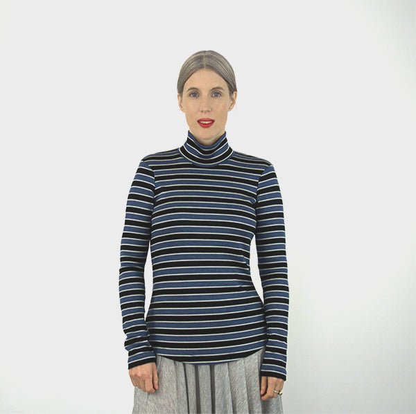 The Glacial Tee / Skivvy was designed for Merino Knits which have a high memory and suit extra shaping for a well fitting form. The Glacial Tee / Skivvy can be made in other fibres with a stretch ratio of 20% or more.